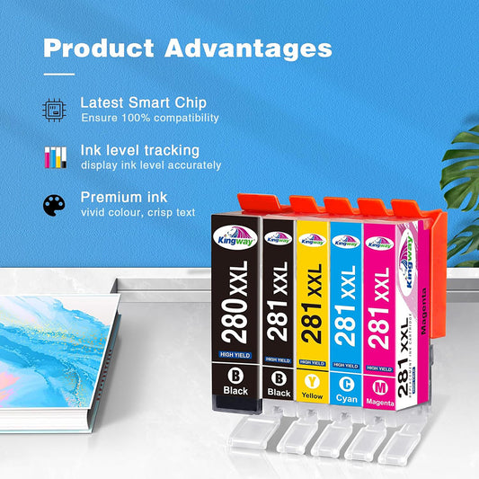 KINGWAY 280 281 Ink Cartridges XXL Replacement for Canon 280 and 281 Ink Cartridges Compatible with Canon Pixma TR8620a TR8620 TR8520 TS9521C ts6320 Printer